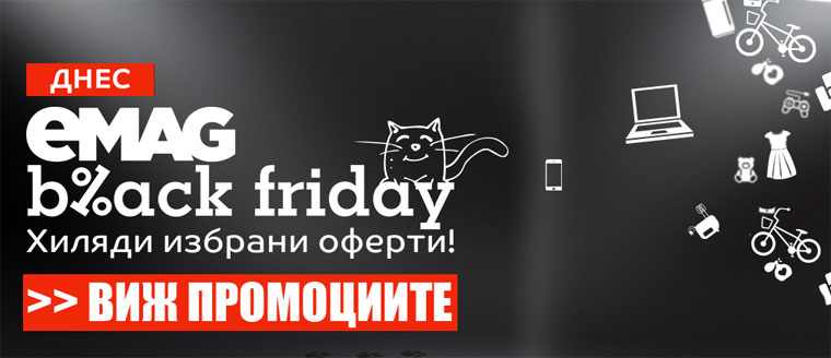 Черният петък е най-голямото шопинг събитие в Света, а от няколко години тази тенденция навлиза все повече и у нас. В интернет пространството, безспорно най-рекламираният „Черен Петък“ е този на eMAG.bg – от онлайн гиганта съобщиха, че през последните 10 месеца са се подготвяли за този ден, в който ще бъдат включени освен емаг още 200 търговци, които участват в Emag Marketplace. Тазгодишната мащабната кампания ще предлага много повече продукти – потребителите ще могат да избират от над 300 000 бройки продукти в почти всички категории: Smart технологии, Телефони, Телевизори, Таблети, Потребителска и битова Електроника, Фото и Видео техника, както и всякакъв Хардуер и периферия.